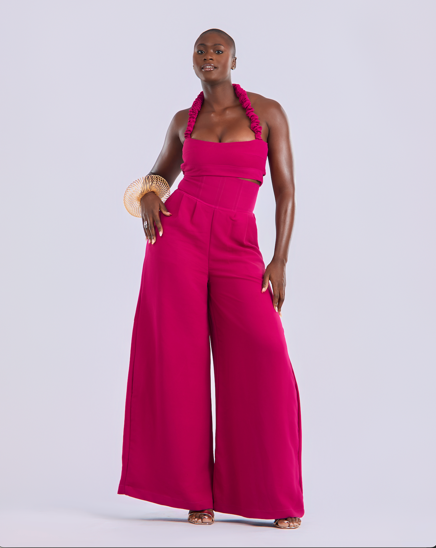 Pink Ruched Neck and Back Bandeau